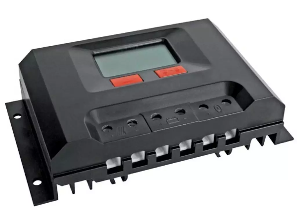 ideal for solar DC lighting system • intelligent control with MCU - maintains the battery in a fully charged state • with functions of over-charging, over-discharging, shut-off loading and over-load protection • auto-detection of wrong polarity of solar panel and battery • battery voltage indicated on LCD display • handles up to 30A (300W) • for use with (not incl.): SOL16 • optional (not incl.): extension cable SOL/SPC2