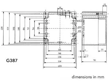 These enclosures consist of high-impact ABS (operating temperature : -20°C to +100°C). The lid and the base are equipped with a tongue and groove sealing system with a neoprene gasket. The mounting holes and the lid-fixing screws are located outside the sealed area, preventing moisture and dust from entering the enclosure. Internal guide slots allow the vertical mounting of PCB assemblies. Designed to meet IP65 of IEC529 and NEMA4 (dust- and hoseproof). The bosses on the internal base allow the horizontal fixing of PCB's or the connection of terminals, etc. with threaded brass inserts. Also available with clear lid (on demand).