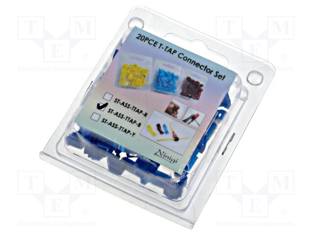 Valmistaja NINIGI Setin sisältö 20x "T" IDC pikaliitin 1-2,5mm2 , sininen Lukumäärä sarjassa/pakkaus 20kpl Pätteen versio eristetty Setin tyyppi liittimet