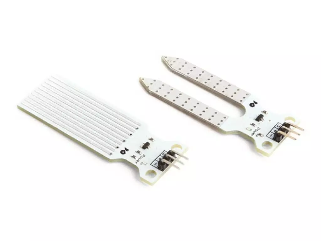 Tämä paketti sisältää vedenkorkeusanturin ja maaperän kosteusanturin. Jos levyt ovat veden peittämiä, "SIG"-liitännästä saadaan analoginen arvo.