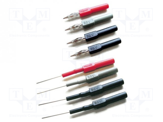 - Setin sisältö: 4x adapteri, banaanipistorasia, 4mm - mittauspää