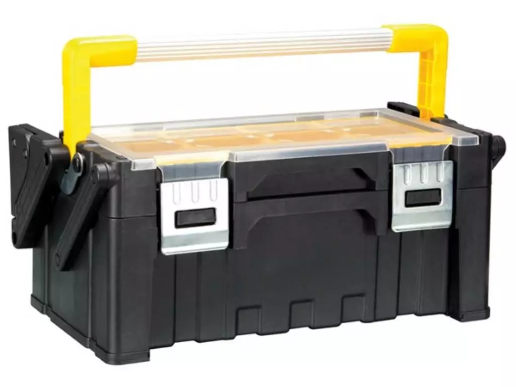 Alumiinikahva ja salvat, kannen muotoilu estää lokeroissa olevien tavaroiden sekoittumisen, ylikaatumissuojaus, automaattilukittuva kahva. Mitat: 45,5 x 24 x 20 cm. Lokerikot: yläosasto: 12... Lue lisää