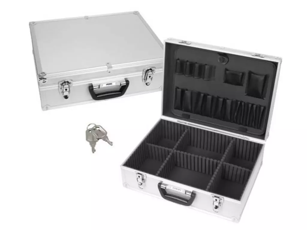 Ominaisuudet • square edges • removable compartments • carrying strap • key locks Tekniset tiedot • dimensions: 457 x 330 x 152mm