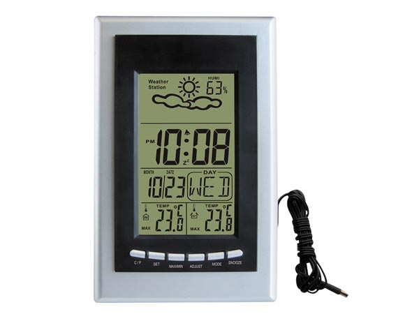 - outdoor and indoor temperature measurement via probe